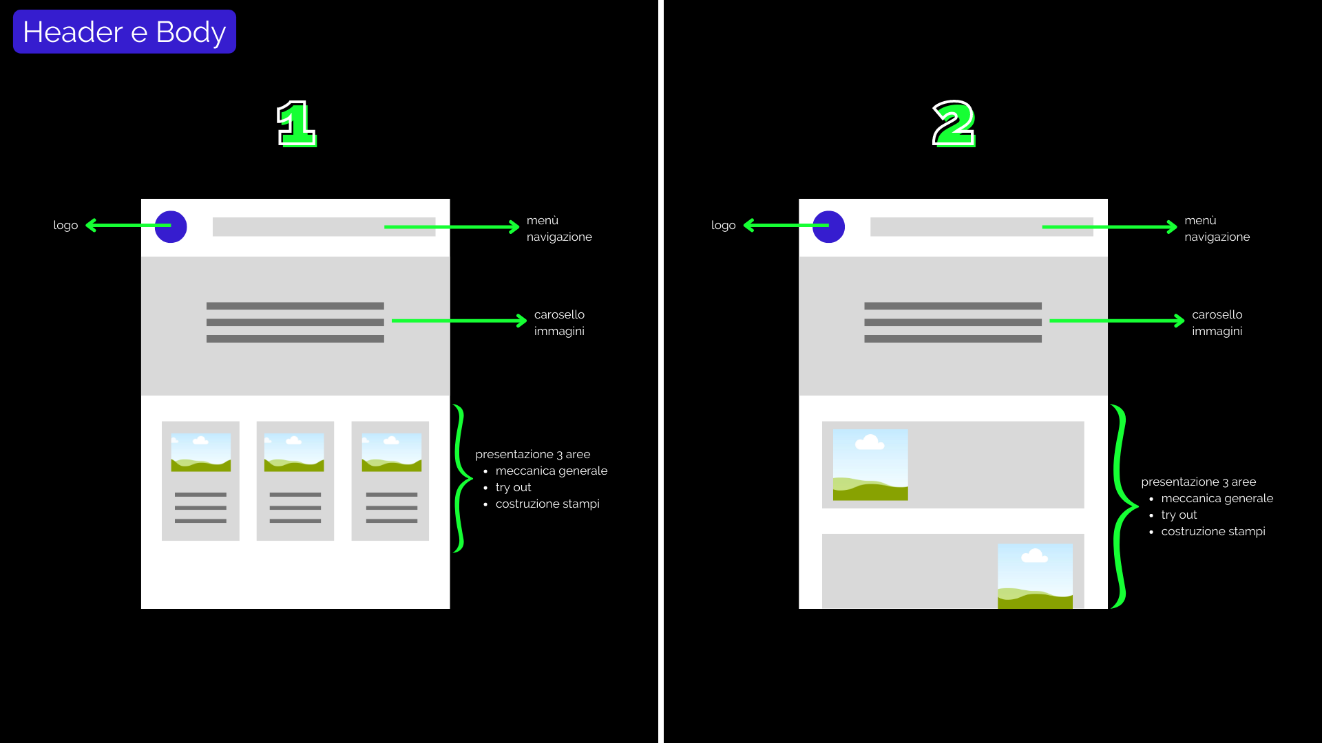 Per ogni nuovo progetto ti proporrò 3 o più vesti grafiche diverse tra le quali potrai scegliere.